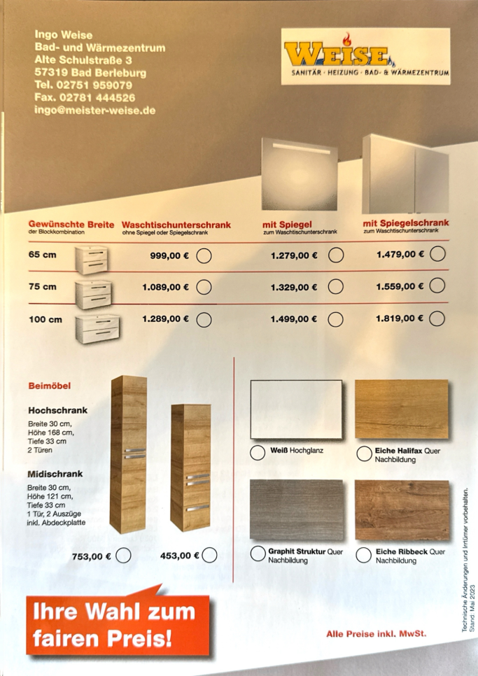 Badmöbelblöcke mit Spiegel oder Spiegelschrank